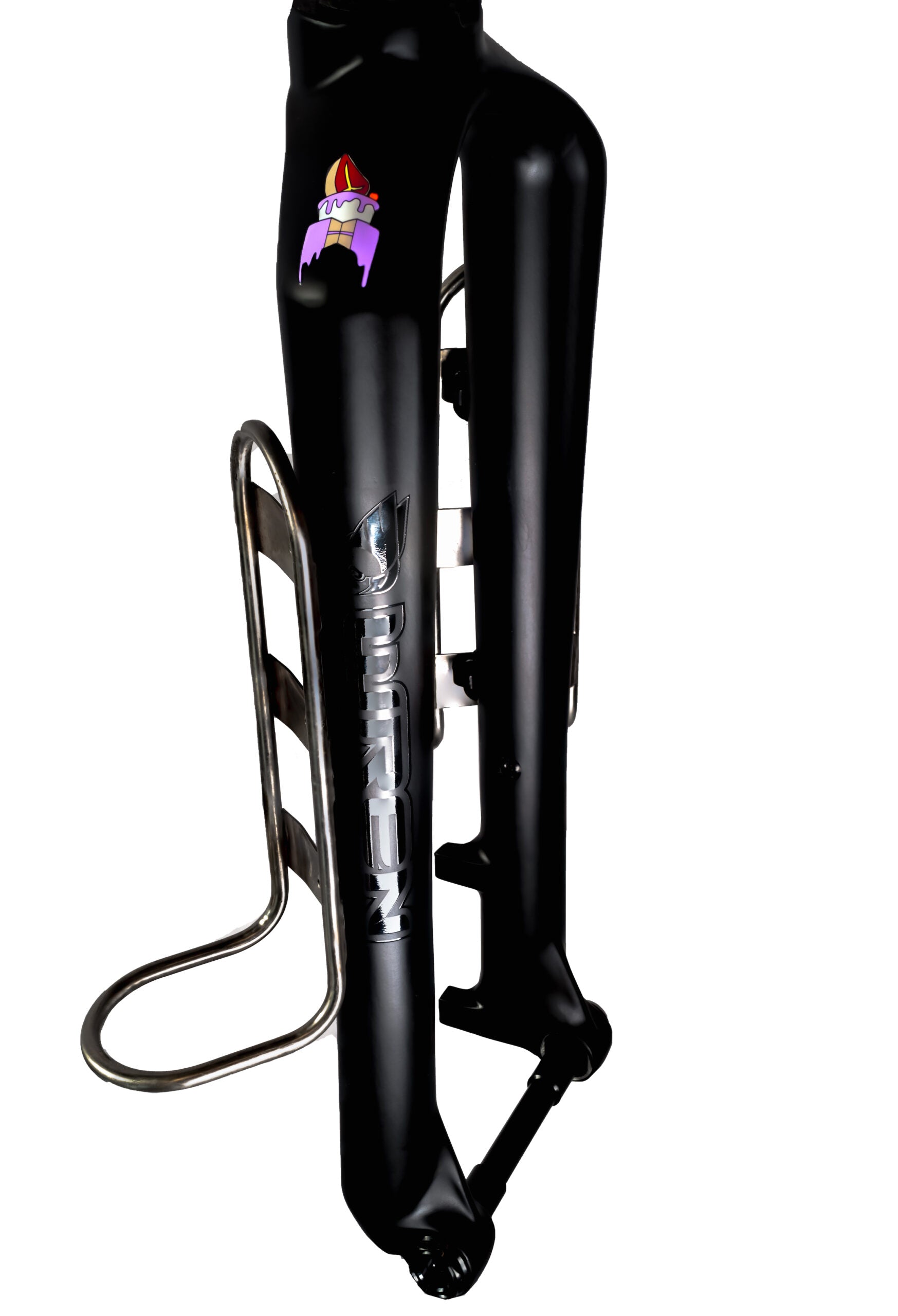 You can never carry enough stuff. We outfitted Beefcake with 9 anodized bosses. 3 – M5 bosses running vertically on the outside of each fork leg. These are angled rearward to help keep your gear from hanging up in narrow single track. Smart. 1 – M5 boss on the inside of each fork leg for mounting fenders. 1 oversized M6 boss under the crown for mounting a light, rack, or whatever you can dream up (spatulas anyone?).